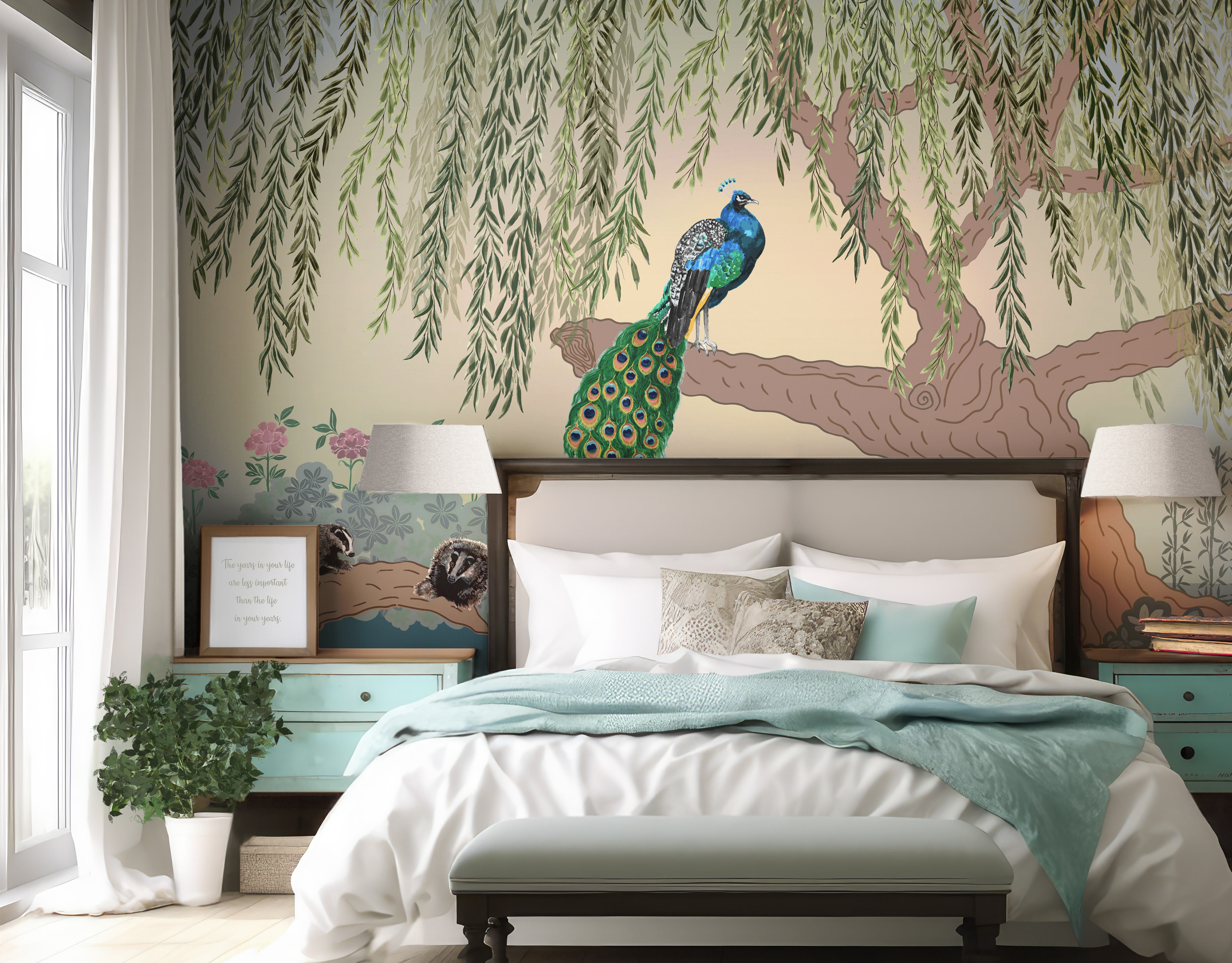 Secret Sanctuary Wall Mural Willow Tree & Peacock