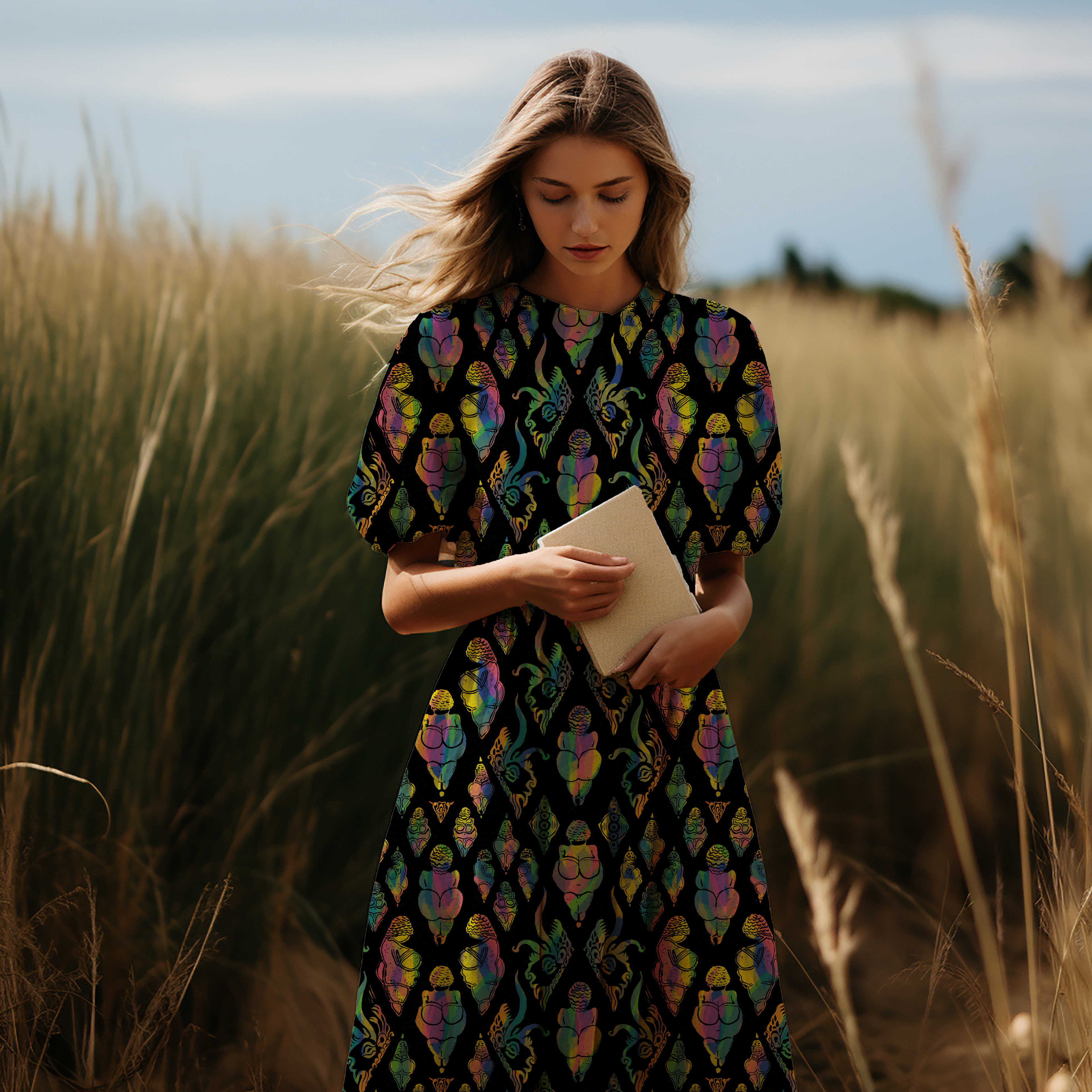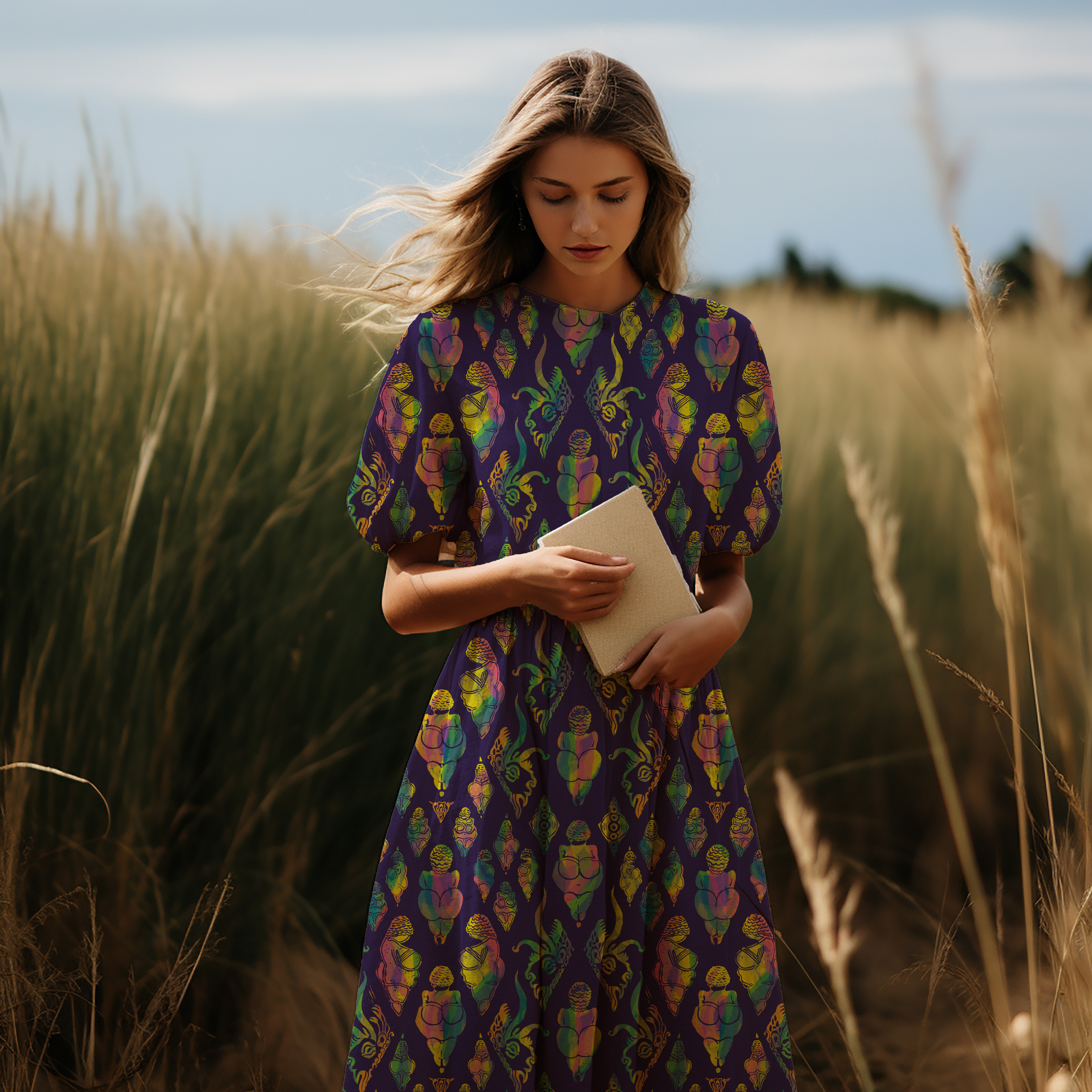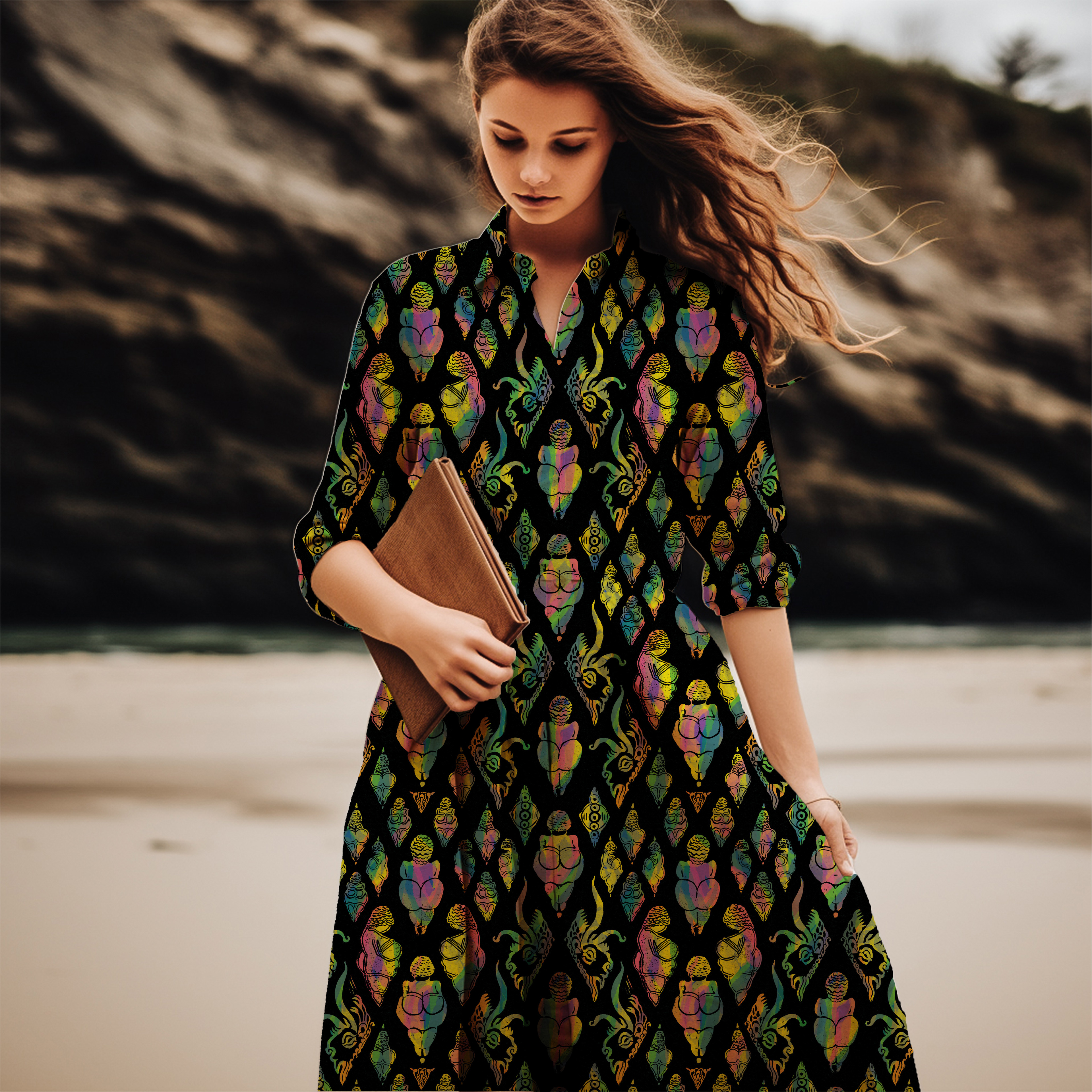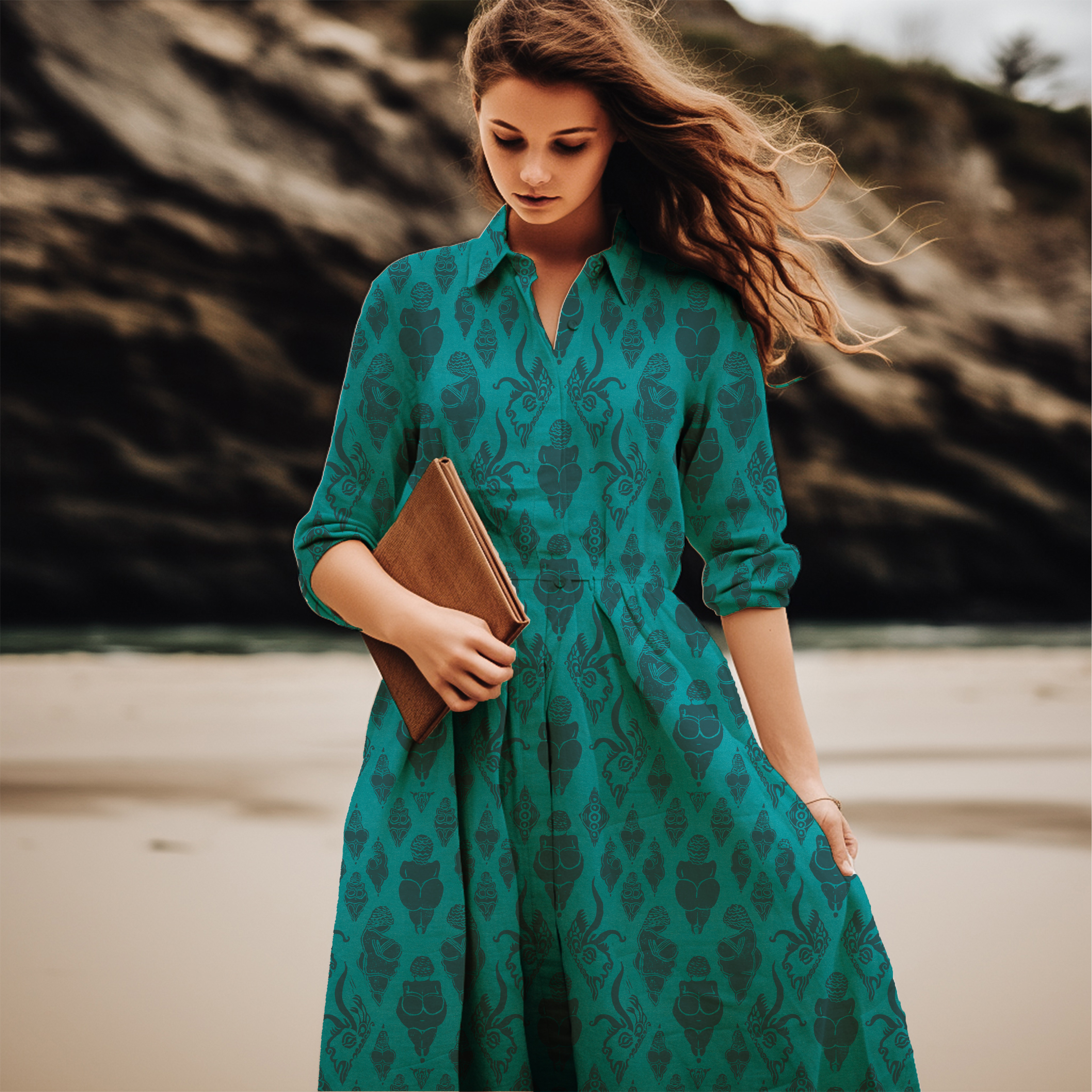 Venus of Willendorf print: An archeology, prehistoric goddess figurine inspired print pattern. Crafted as Blockprint, digitized and colored with Riso Print.