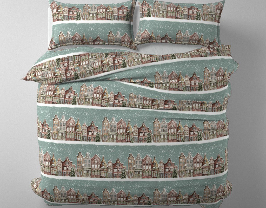 Cozy Dutch Houses in the Snow Wallpaper