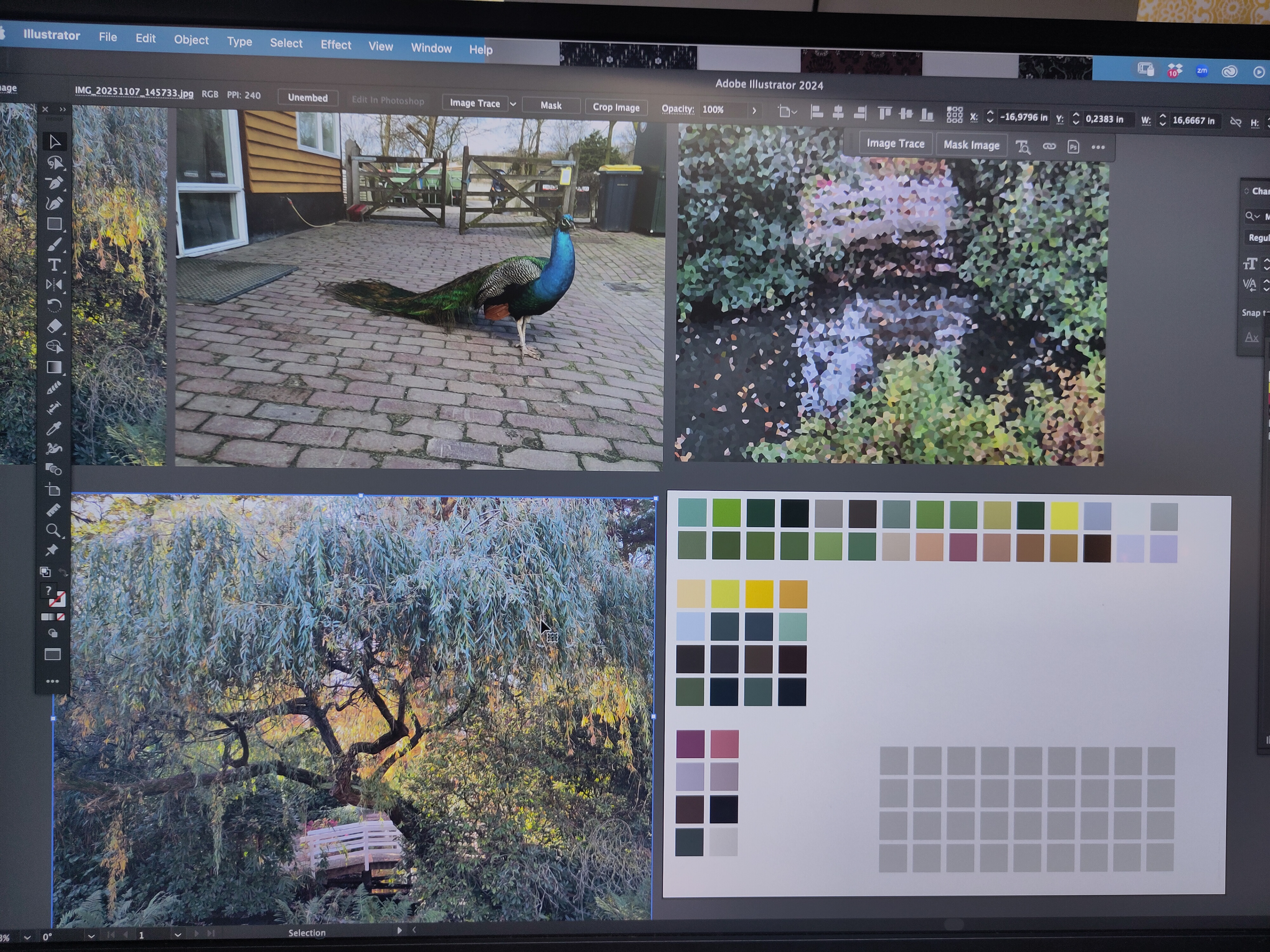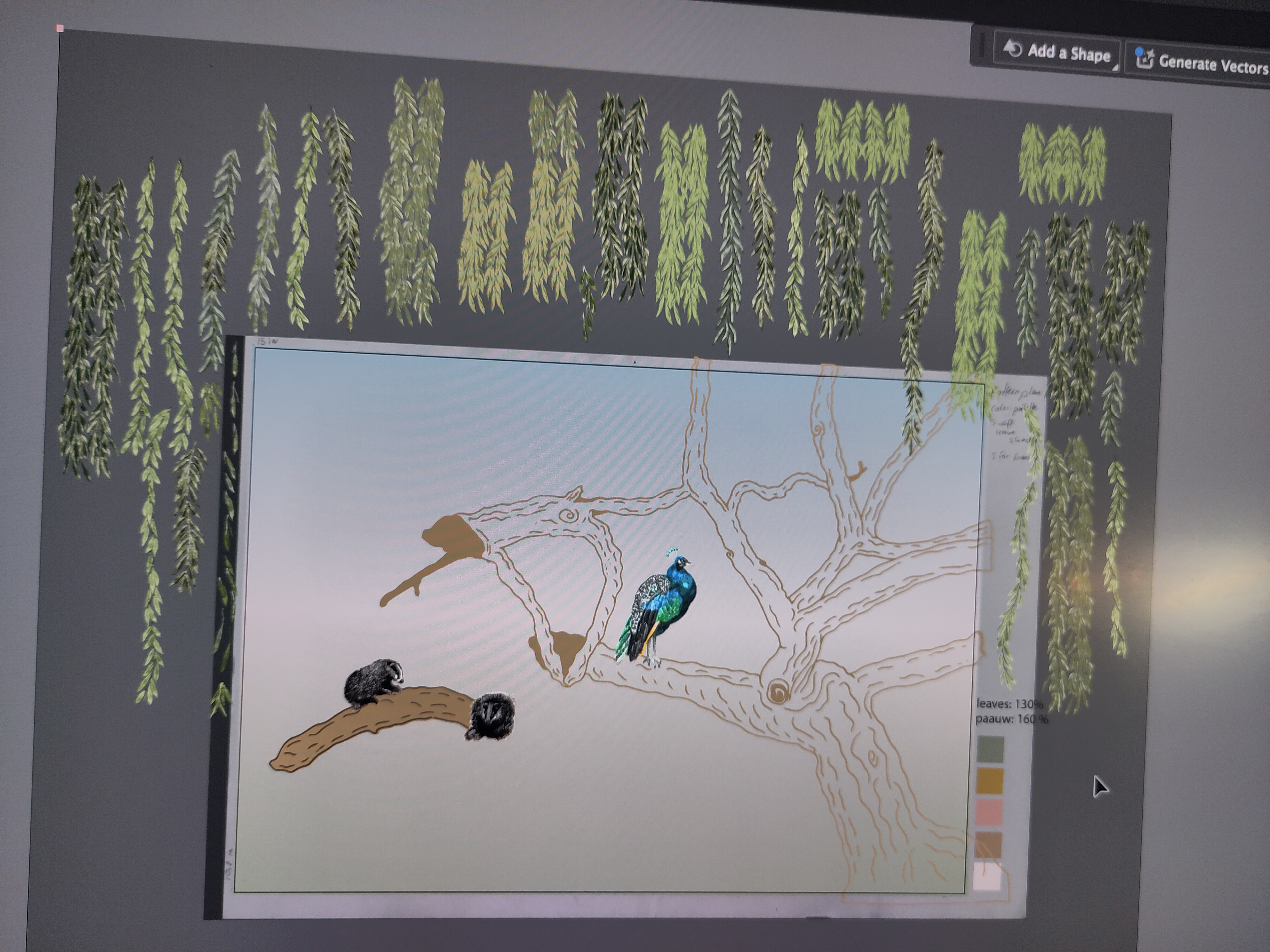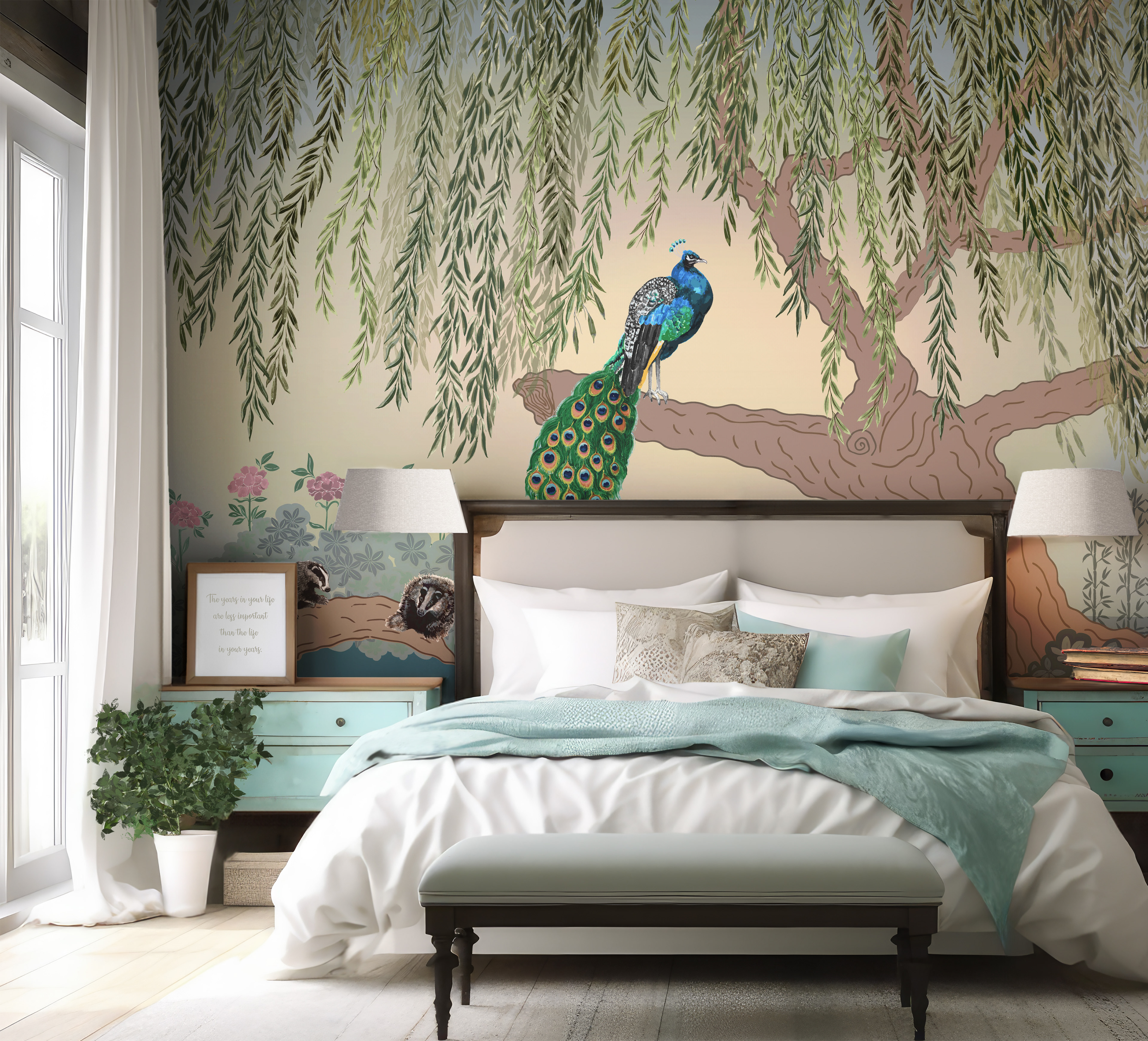 Wall Mural "Secret Sanctuary". Inspired by my onw photo's of an existing place near by. Hand painted with watercolor & gouache. Digitized, refined in Photoshop. Assembled in Illustrator. Designed for 150 in x 108 in. Currently under option for licensing.