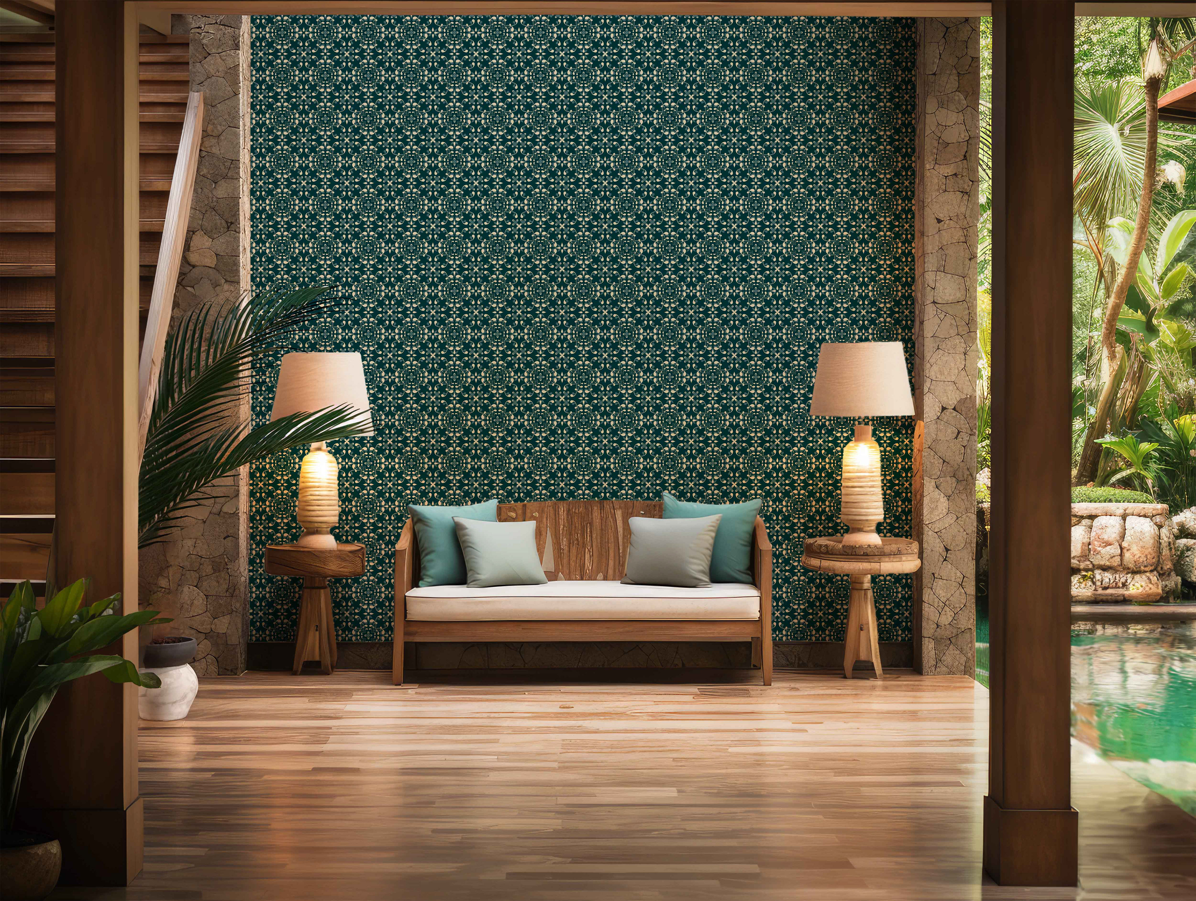 Tiled Geometric Ornament - Bohemian Style Interior Accent Wall & Upholstery Fabric