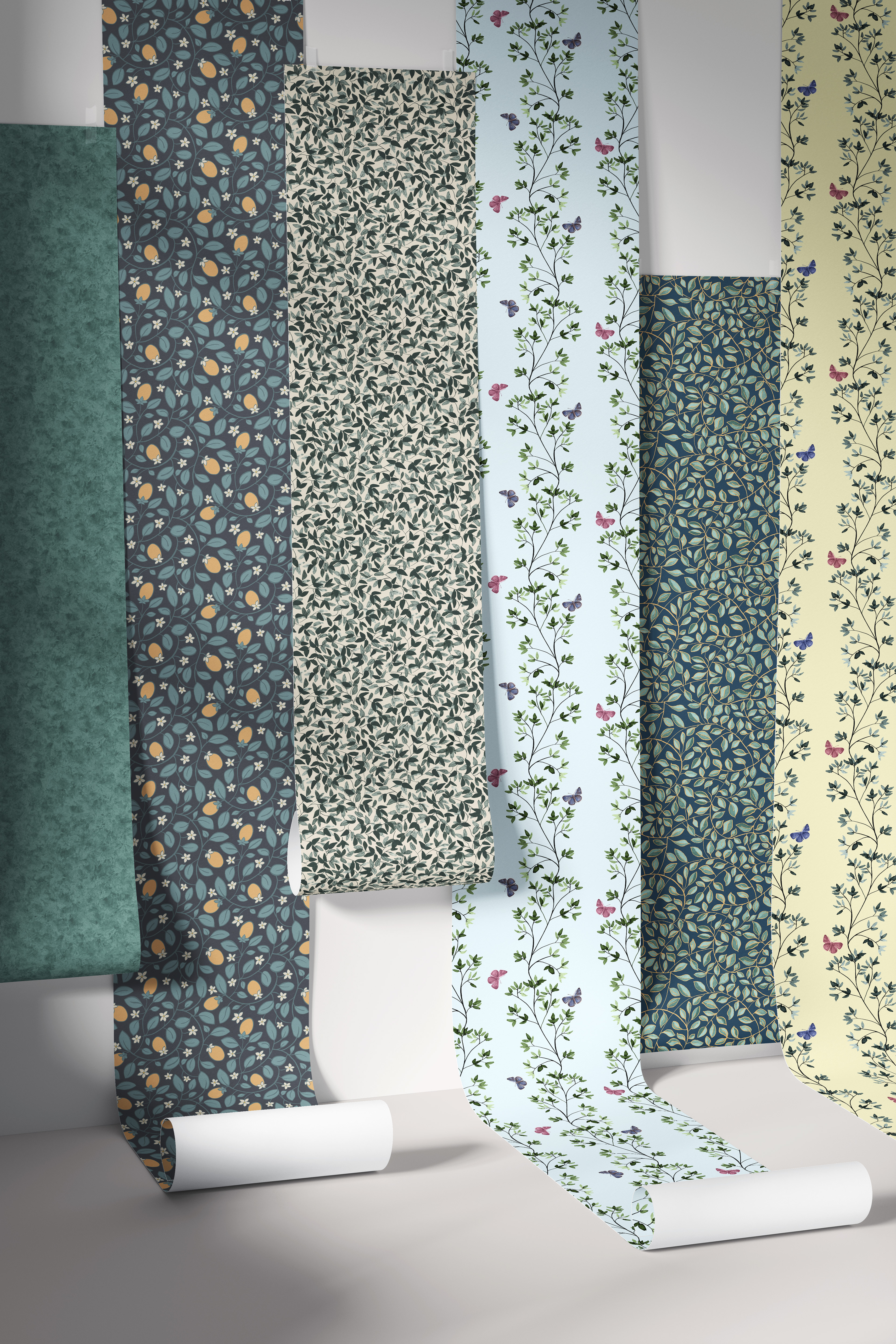 Botanical in drawings, inspired by Art Nouveau & William Morris; using a colore pallette derived from the most popular wallcolors of '25 and persisting trend colors for 2026.